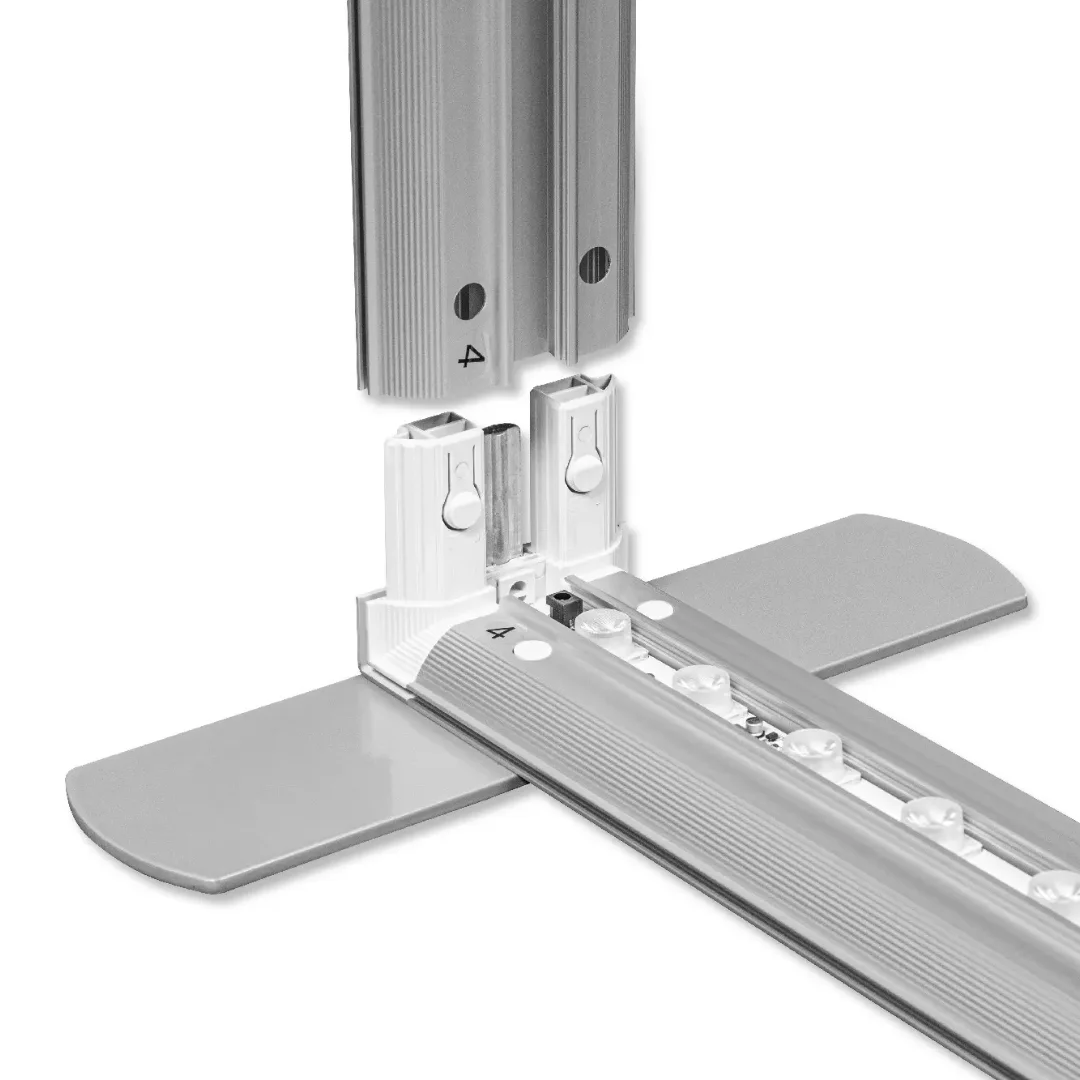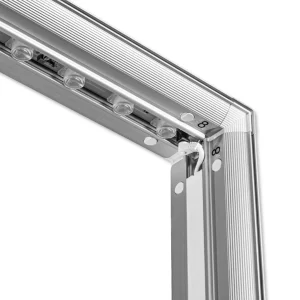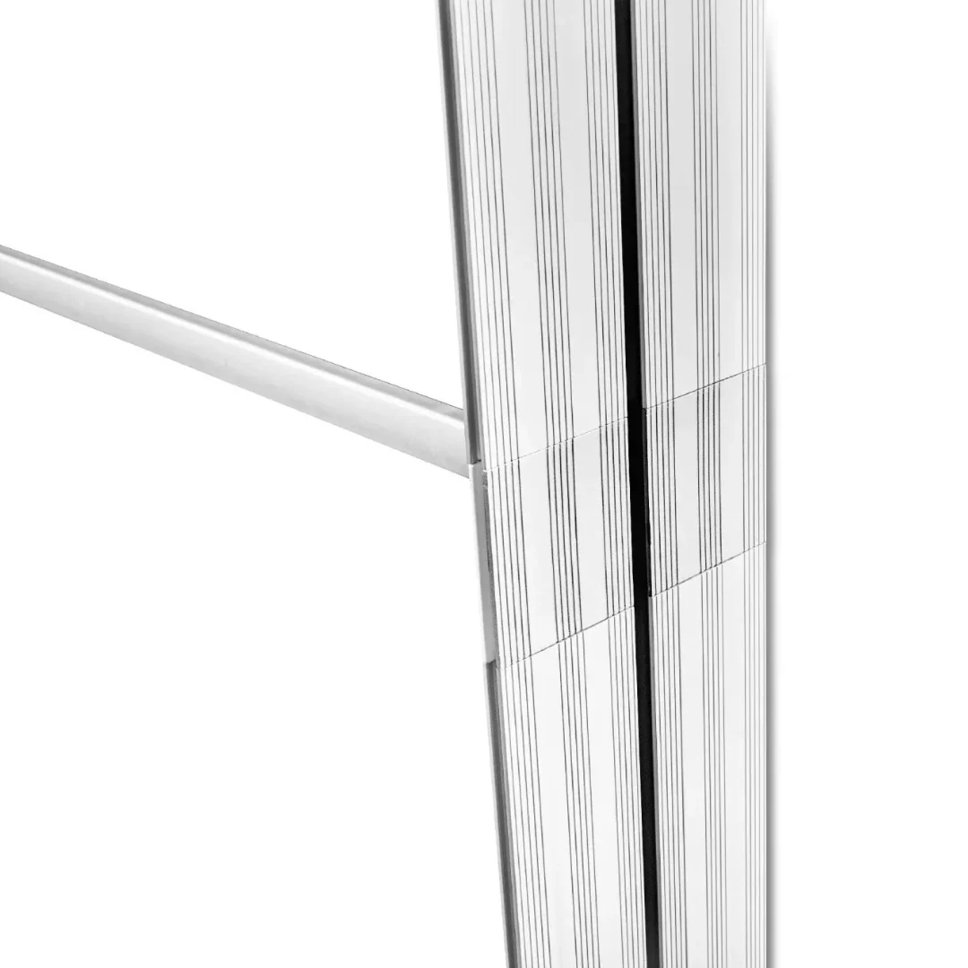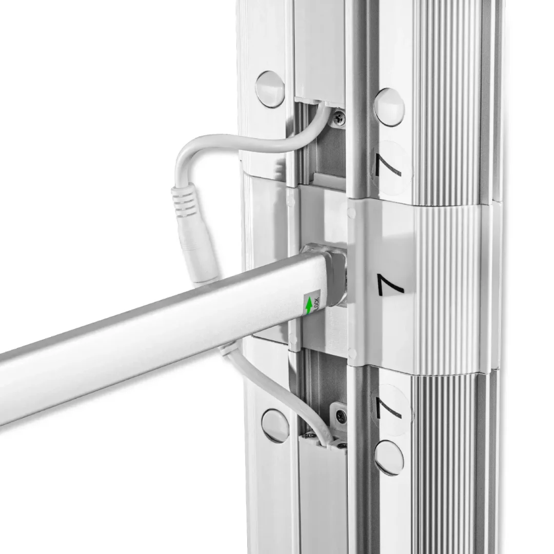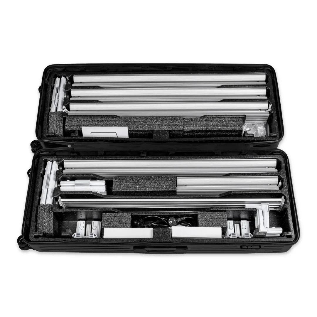 Promocijska stena Lumix osvetljena stena je vrhunski, dvostranski osvetljen predstavitveni sistem iz aluminija, zasnovan za maksimalen vizualni učinek. Vgrajena LED osvetlitev zagotavlja izjemno privlačen in enakomerno osvetljen prikaz grafik, ki pritegne pogled tudi v bolj osvetljenih prostorih. Okvirji iz kakovostnega aluminija s širšim profilom (12 cm) ter grafika, pritrjena s silikonskim robom, zagotavljajo dolgo življenjsko dobo, stabilnost in enostavno rokovanje. Celoten sistem je zapakiran v trpežno transportno torbo na kolesih, kar bistveno olajša shranjevanje in prenašanje.