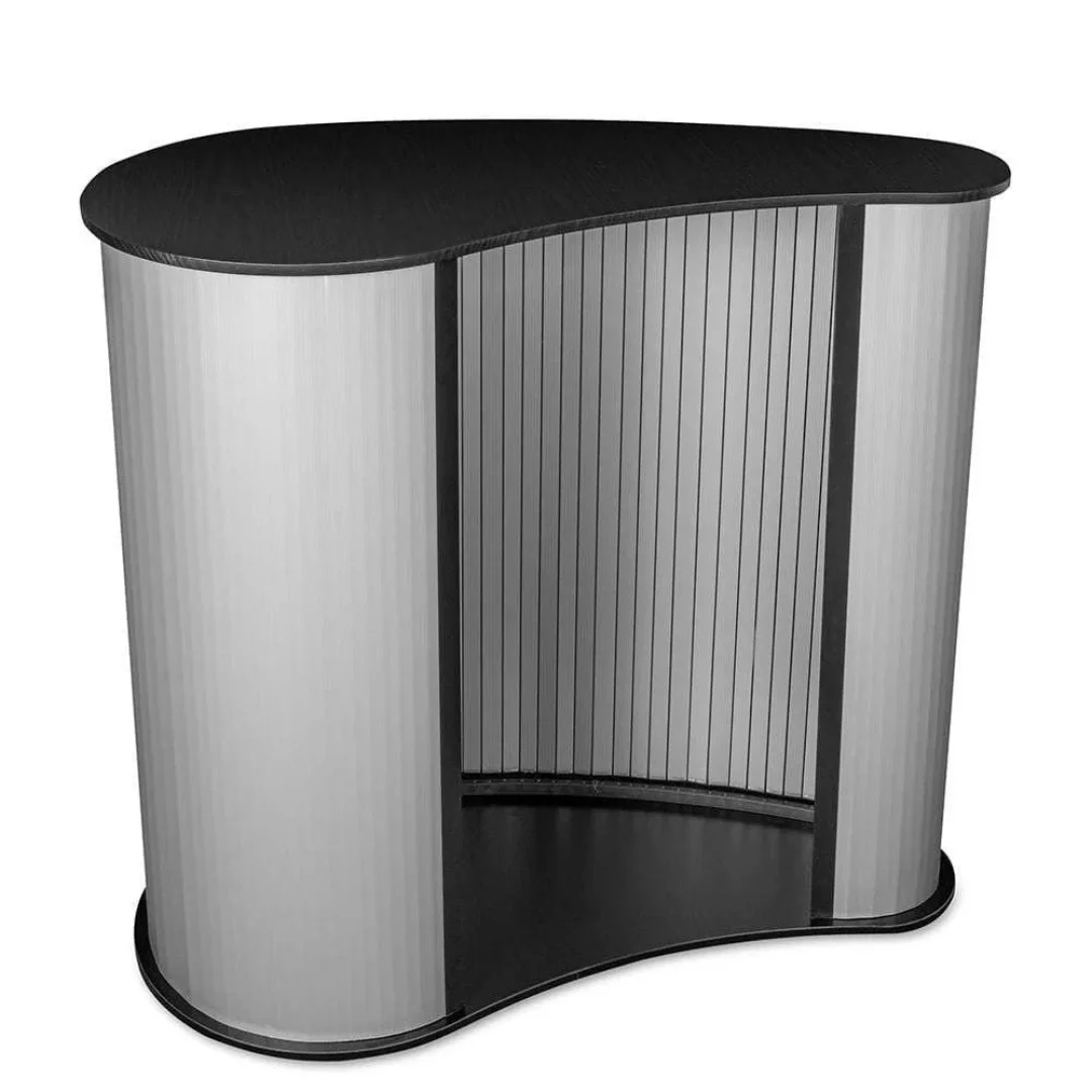 Ta pult je odlična izbira za vse, ki potrebujejo večjo predstavitveno površino, stabilnost in profesionalen izgled na dogodkih ali prodajnih mestih.